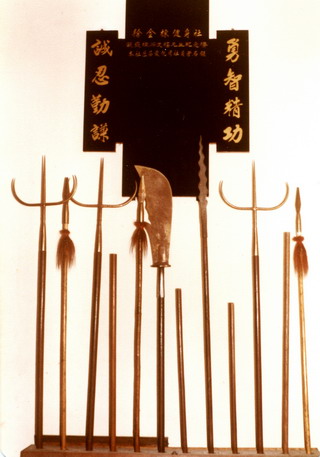 Bagua Zhang is a martial art based on the concept of perpetual change and adjustment to circumstances, to enable the exponent to overcome the physical force of an opponent with skill: see traditional Bagua footwork chart to right. The soft/internal boxing Eight Trigram System, as we know it today, is derived from a certain Dong Hai Quan [Chuan], born in 1813 in Hebei Province. Bagua Zhang itself is based on the concept of change symbolized by the EIGHT TRIGRAMS (‘Ba Gua’) of the BOOK OF CHANGES [I Ching/I Jing] which represent all natural phenomena in the cycle of change to which all living things, including man, are subject. Tai-Ji is a Traditional Chinese Art practised for mental, physical, and spiritual discipline for cultivating the internal energy system. Tai-Ji is unique among the ‘Three Sisters’ [Xing Yi, Bagua Zhang, and Tai-Ji] in having the greatest affinity to Wuji – the first, most ancient of the Chinese Internal Arts (of which the ‘Three Sisters’ are the most well-known, dating as they do from more recent times) – in that both Tai-Ji and Wuji, in addition to their renowned fighting application, also provide very great benefits to physical, mental, and ultimately, spiritual well-being. Tai-Ji applies the concept of yin yang interplay to fighting: meeting force (yang) not with force, but with softness (yin) which through sticking and adhering to the opposing force comes to absorb and weaken it, until it can be easily redirected or beaten with minimal effort. Tai-Ji Quan’s creation is attributed to the legendary figure of the late Song Dynasty Daoist Zhang San Feng, but it is certain that the art was being practiced in elementary form long before his day – just as the older, and partly related, lesser well known art of the Wuji similarly has origins still more ancient. However, the founder of the first form of Tai-Ji in definitive form was Chen Wang Ting (1600-1680 CE). Chen Style Tai-Ji is the oldest of the five major styles of Tai-Ji: Yang Style being the most popular and well-known of the five. FOR MORE AND FULLER DETAILS OF THE THERAPEUTIC DIMENSION OF TAI-JI PLEASE VISIT THE MEDICAL AND THERAPEUTIC PAGE OF www.qi-china.com The Six Harmonies are comprised of three yin and three yang. As regards the three Internal Harmonies, the heart/desire harmonises with the intent; the intent harmonises with the Qi or vital energy; the Qi harmonises with the physical strength. Concerning the three External Harmonies, the shoulders harmonise with the hips; the elbows harmonise with the knees, and the hands harmonise with the feet. Since its inception, Xing Yi itself has been regarded by many Chinese military historians of later times as the internal boxing system most adaptable to the needs of military combat. The origins of Xing Yi Quan, the oldest of the Three Sister Internal Arts, are shrouded in mystery, for legend attributes its creation to the renowned Song Dynasty general, Yue Fei (1103-1141 CE: above right), who created a boxing style called ‘Xin Yi Liu He Quan’ [Heart-Mind Six Harmonies Boxing]. The earliest verifiable historical information concerning this System refers to Ji Long Feng – who lived during the early 1600’s towards the end of the Ming Dynasty - of Shanxi Province as being the first to teach the art of Xin Yi Liu He Quan. Ji Long Feng was a great master of spear fighting techniques, from which he drew inspiration for the creation of the Xing Yi System. The philosophic concepts on which the system is built provide yet another instance of the influence upon the martial arts of core ancient Chinese metaphysical and spiritual concepts, found in their most concentrated and vibrant form in Daoism. We teach a selection of Traditional Chinese martial weapons (including those listed below) sets via specific weapon-related special seminars and short courses: Weapon Sets include SHORT and LONG Weapons. PLEASE NOTE: We ONLY teach traditional weapons sets.